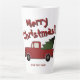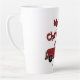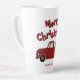Funny latte mug with red truck and Christmas tree . Old vintage Chevy truck hauling a Christmas tree. Fun design for the holidays. Personalize with your own custom text and colors.