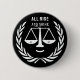 Lawyer button gift or graduation party favours featuring cartoon scales of justice and creative quote.