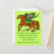 First there was Genghis Khan, then Kublai Khan, but neither was as ruthless a leader as the Irish equivalent, Lepre Khan. This wee little man will slay anyone in his path - if they come between him and his gold nuggets. In this funny design, the mighty leprechaun is riding his horse, waving his sword and shield, with a saddle made of a rainbow, of course. He might be a little-known (and very little) historical figure, but he doesn't have to be! If you give out this postcard on Saint Patrick's Day, everyone will be green with envy.