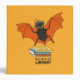 Funny librarian and teacher binder with a cute bat book lover flying over some books and the text "Meet me at the library".