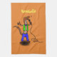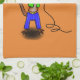 Funny lizard singing with microphone cartoon kitchen towel