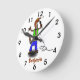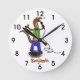 Funny lizard singing with microphone cartoon round clock