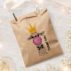 Thank you favour bags with a whimsical llama blowing a big pink bubble. Wearing a gold crown and a black bow tie.