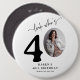 Celebrate forty years in style with our Look Who's 40 Milestone Button! Featuring a photo of the birthday person as the '0' in their age, this customizable button is a unique way to make them feel special. Our elegant calligraphy and personalized details, including their name, age, location, and year, make this the ultimate gift or party favour for all your guests. Cheers to thirty years of memories and milestones!