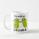 Do you love pickle and romance puns? We combine them together for this ceramic mug. It's an illustration of a couple of cute pickles with the caption "We're In Love Dill With It!"
