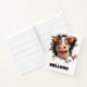 The hilarious face of a brown and white cow peeking through a hole with a shocked expression on its face will make anyone smile. The word, hello, appears below the funny graphic and may be personalized to suit your requirements. These are ideal for school or business use. Feel free to change the colour of the binding rings and choose the paper print you would like for the inside from those available which range from wide ruled to sketch options.