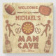 Create your own humourous, custom "man cave" stone coaster using this easy template. Made to look like the wall of a cave, the coaster has primitive drawings of men throwing darts, a dart board, a TV, a football, two baseball bats, two baseballs, two pretzels and a couple of retro beer bottles. The coaster can be easily personalized with your name and the year your home bar or "man cave" hideout was established. "Welcome" and "to" are also changeable if you'd like - but the "Man Cave" words are part of the design. The whole coaster is in shades of brown, yellow and a little red.