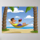 Transform your walls into a personal sanctuary with this vibrant tropical wall art. The high quality print features a humorous cartoon of a man enjoying total relaxation in a beach hammock between two palm trees. Holding a coconut drink with a tiny umbrella, the character represents the ultimate goal of retirement and leisure. This poster is an excellent choice for decorating a home office, man cave, or beach house, bringing a cheerful and sunny atmosphere to any indoor space. The bright blue ocean and white sandy shore create a beautiful coastal backdrop that serves as a daily reminder to take it easy and enjoy the island life.