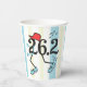 Cute, funny, colourful running 26.2 marathoner character © with a red cap and blue shoes! Funny Marathon Sports themed for the long distance twenty-six point two mile runner!  Funny Marathon Cups for people who run long distances or running instructors or coaches.  The Background is a Blue and Yellow Striped Pattern to highlight the Sports Figure.