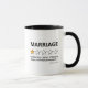 Funny couple mug featuring the word "marriage", with a 1 out of 5 star rating, a bad review saying "overrated, costly, stressful, would not recommend it", and their name.