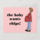 This funny maternity design says The Baby Wants Chips. Every pregnant mom has cravings; just blame it on the baby! Great gift for a friend or family member who is expecting.
