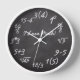 Show off your math and algebra skills with this cool math geek equation clock, featuring a math arithmetic problem or equation for each hour of the day. The face resembles a chalkboard blackboard with white chalk writing just like at school, college or university. A great funny gift for a mathematician, engineer, math, algebra or calculus teacher, student, math club geek, nerd or generally smart and funny person.