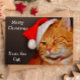 This funny cat Christmas card will make the day of cat lovers and non-cat lovers alike. The outside of the card features an orange tabby cat wearing a red Santa had and winking. Next to the cat are the words in white letters, "Merry Christmas From the Cat" and inside the card is a funny little holiday greeting in red letters, "Have a Purrrfect Christmas". The inside also has the Family Names which you can personalize by adding your own family Name and family members' names. Thanks for stopping by my store.