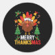 Funny Merry Thanksmas Happy Thanksgiving Santa Tur Classic Round Sticker