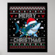Funny Merry Ugly Christmas Shark Santa Hat Lights Poster