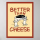 This humorous design shows two mischievous cartoon mice carrying a record player with the bold phrase “Better Than Cheese.” Perfect for music lovers, vinyl enthusiasts, and anyone who enjoys quirky, unexpected humor. The playful artwork and clever joke make it a fun choice for gifting or adding personality to everyday wear.