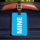 This funny blue luggage tag says it all! It says "mine" on the front loud and clear in white against the blue background. You can easily personalize the back of this funny mine luggage tag with your necessary details.