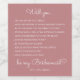 Funny Modern Dusty Rose Script Bridesmaid Proposal Wine Label