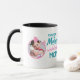 Add three photos (square ones are perfect as they will resize automatically to fit inside the round frames) to personalize this modern trending gift mug for MOM. Perfect for Mother's Day, Mom's birthday, Mother's Christmas or as a Thank You or Get Well Soon gift. The photos can be of children, mom, family photos as desired. Striking pink and black are the colours. The expression is "Everyday I'm Motherin' World's Best Mom".