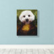 Funny Mona Lisa Maltese Dog Stretched Canvas Print