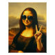 Add a touch of humour and style to this playful reinterpretation of the iconic Mona Lisa. Featuring sunglasses and a peace and love sign. perfect for any art lover with a sense of fun. Great for home decor or as a unique gift.