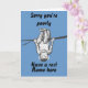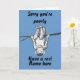 A monkey hanging upside down on a branch, saying "Sorry you're poorly. Add name to front, add to message, change message completely, inside.