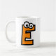 Funny monogram letter E in orange and black with cartoon eyes. Easily customize and choose your own background colour. Image available on various gifts and products.