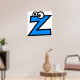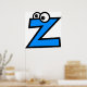 Funny monogram letter Z in blue and black with cartoon eyes. Easily customize and choose your own background colour. Image available on various gifts and products.