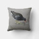 This awesome pillow features a photograph of a Moorhen, a pretty water bird with a distinctive yellow-tipped red beak found in Great Britain. This funny individual appears to be taking a bow, but is actually pecking at some crumbs on the ground.