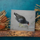 This awesome plaque features a photograph of a Moorhen, a pretty water bird with a distinctive yellow-tipped red beak found in Great Britain. This funny individual appears to be taking a bow, but is actually pecking at some crumbs on the ground.