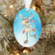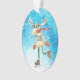 Le devant de cet ornement a l'image aquarelle d'une drôle d'orignal de patin à glace portant des lunettes de vue, son pull d'hiver, foulard et mitaines. L'image est placée sur un joli arrière - plan étoile de livre bleu abstrait. L'arrière de l'ornement a le même arrière - plan de livre bleu et blanc avec plusieurs champs de texte à customiser. **Crédit design à EphrazyDesign.