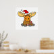 Funny Moose in Santa hat Christmas Cartoon Poster