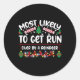 Funny Most Likely To Get Run Over By A Reindeer T Classic Round Sticker
