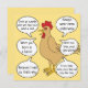 Funny Mother Hen Advice for Mother's Day or any other day. Great for mothers or grandmothers or any guardians who raised you and gave you such advice and thaught you things when you were growing up. Cute brown Chicken is a mother hen and advice are given in talk bubbles. All can be customized. The back text "To the best Mother Hen. I love you Mom." can also be changed or left as is.
