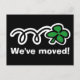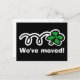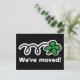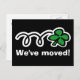 Funny moving postcards with lucky 4 leaf clover. Custom move text; We have moved! Add your new address on the back. Modern new house cards for home and business.