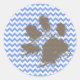 Funny Muddy Paw Print on Blue Chevron Classic Round Sticker