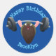 This cute funny green lip mussel is exercising his muscles! Drawn in fun cartoon illustration style.