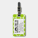 STYLISH, FUNNY, RETRO MUSTACHE LUGGAGE TAG. BLACK MUSTACHE WITH LIME GREEN AND WHITE POLKA DOT PATTERN. "I MUSTACHE YOU TO RETURN MY LUGGAGE". MOVIEFUN© A fun gift for her. For other colours of moustache or background polka dots pattern please contact designer.