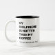Funny my girlfriend is hotter than my coffee Two-Tone coffee mug