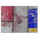 A grunge wooden texture with knots, snags, nail heads and peeled off old paint. In the days of yore, some parts of this surface were painted in red, blue and yellow. Stylish avant-garde products for anyone.