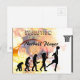 Netball postcard design with fun evolution picture. Netball positions customisable postcard.