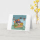 A kitty business man has an inbox containing kitty food and his out box is a litter card. A great card to give someone on the occasion of a new job or a promotion.