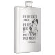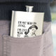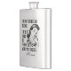 The product is a good size and came exactly as it was pictured. The lid is not attached to the flask, which could be dangerous on drunken nights... The print came out surprisingly well and looks very sharp. Would definitely recommend.