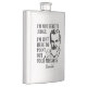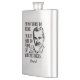 The product is a good size and came exactly as it was pictured. The lid is not attached to the flask, which could be dangerous on drunken nights... The print came out surprisingly well and looks very sharp. Would definitely recommend.