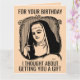 FUNNY NUN BIRTHDAY CARD. FUNNY SENTIMENT INSIDE.