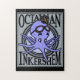 Funny steampunk Octopus Pilot graphic illustration vertical puzzle. Background boarder can be customized.