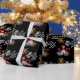 Festive personalized Christmas holiday wrapping paper design with white gold winter snowflakes and black customizable background, and a funny gothic steampunk octopus kraken Santa with Xmas presents. Personalize this design by adding your family name or Xmas text greeting PLEASE NOTE the gold is not metallic