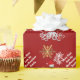 Festive personalized Christmas holiday wrapping paper design with white gold winter snowflakes and red customizable background, and a funny steampunk octopus kraken Santa with Xmas presents. Personalize this design by adding your family name or Xmas text greeting PLEASE NOTE the gold is not metallic