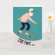 Funny Old Fart birthday greeting card with a digital illustration of an old guy riding a skateboard. Fun skateboard humour inside. Art, image, and verse copyright Shoaff Ballanger Studios, 2023.