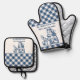Funny Oven Mitt and Pot Holder Set Retro Plaid